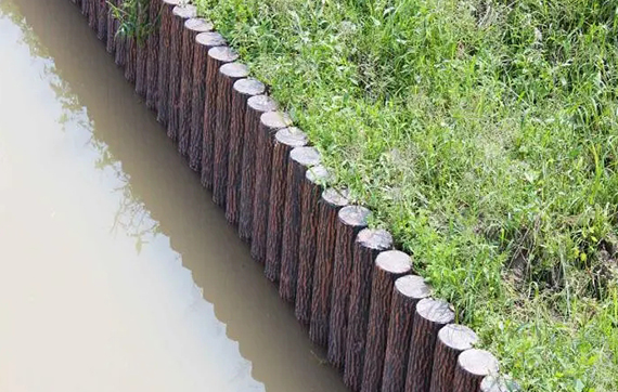 • 水泥樁批發廠家泓樺錦嘉-水泥仿木樁適合用于河道護坡嗎?